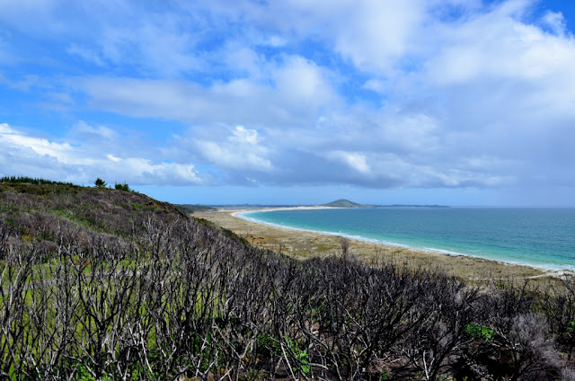 Vyjíždíme docela pozdě, protože počasí ráno za nic nestojí a my vyčkáváme, člověk tu totiž neví co se přižene. Mění se to tu rychleji než na horách, z modré oblohy je za 20 minut rázem déšť a naopak. Kolem 13 hodiny přijíždíme k vytyčenému cíli, odhadujeme místo kde by se daný Cape mohl nacházet a vyrážíme. Cesta vede po pláži, která nebere konce, pouze vidíme vzdálenou horu, která se k nám nepřibližuje. Po více jak hodině chůze po pláži přicházíme k brodu, který je 6 metrů široký a na dno nevidíme. Další naše výprava tak ztroskotala a vracíme se. Při návratu k autu zjišťujeme, že jsme špatně odbočili a Cape je na opačné straně pláže. Náladu nám zvedají jehňátka, která jsou všude na pastvinách, protože je teď jejich čas. Navštěvujeme ještě Matay bay, kde jsou pláže připomínající Španělském pobřeží. Po cestě zahlédneme ještě krásnou vinici v Italském stylu.